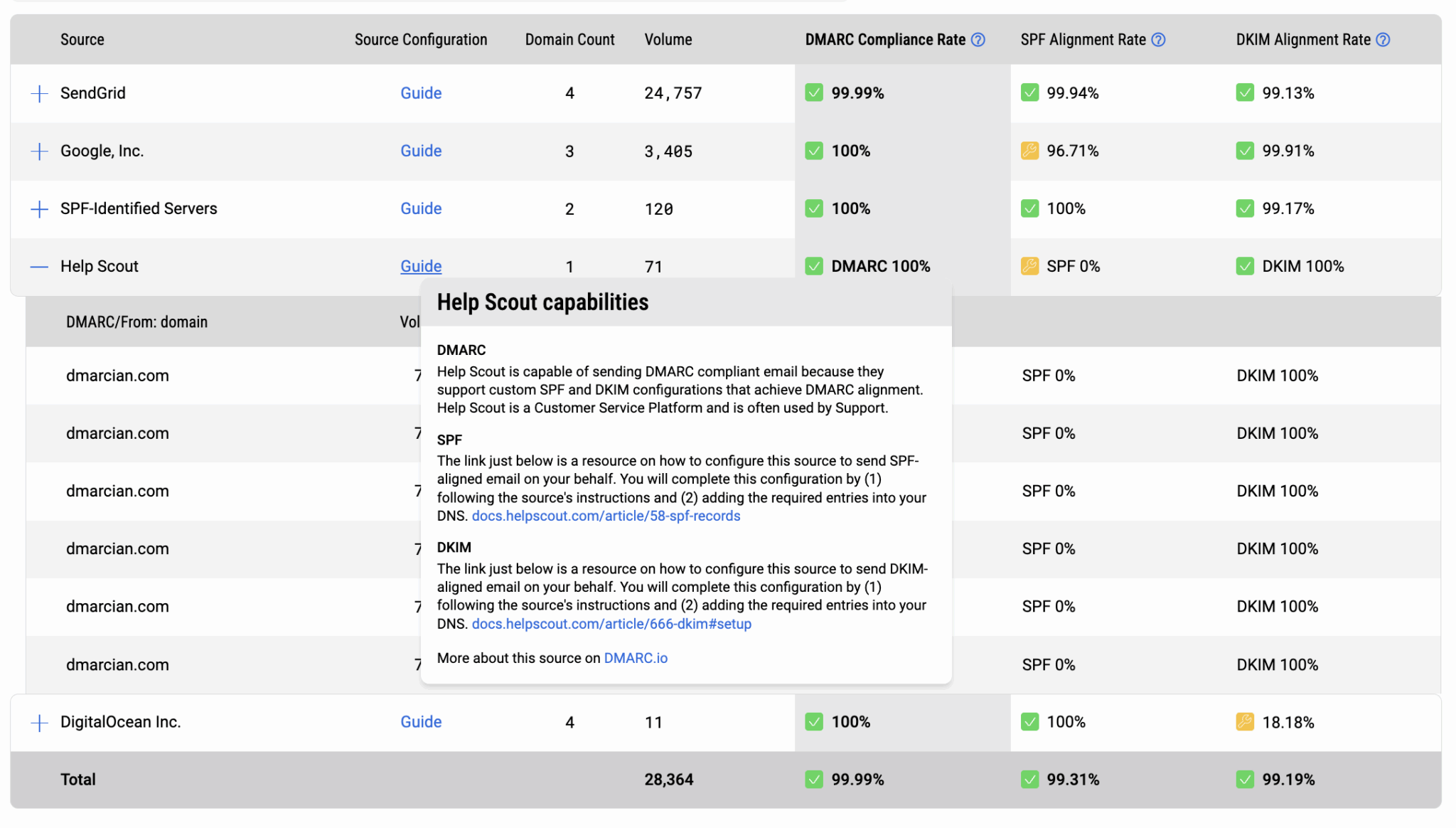 - Instantly see which sources fully comply with DMARC, SPF and DKIM.